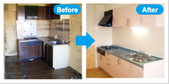 名古屋市港区 S.T様邸 キッチンのスペースが狭く、背面に和室の襖が有った為使い勝手の悪さから全面的にリフォームをしました。L型キッチンからスペースを有効にI型を選びました。 背面の襖も側面に移動し、より広々と使えるようになりました。色も奥様の大好きなパステルピンクにし料理も楽しくなったそうです。 |